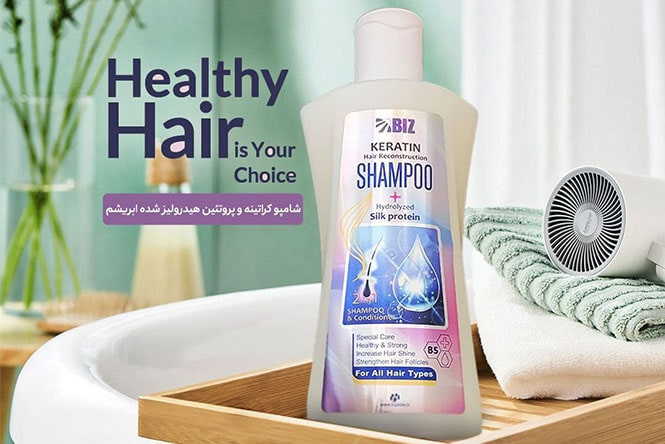 شامپو کراتینه بیز کاهش دهنده ریزش و محرک رشد مجدد مو است ، کراتین به کار رفته در آن به خوبی موهای آسیب دیده را درمان کرده و ظاهری درخشان به آنها خواهد داد ، استفاده مداوم از محصولات حاوی کراتین موها را ابریشمی و درخشنده خواهد کرد.